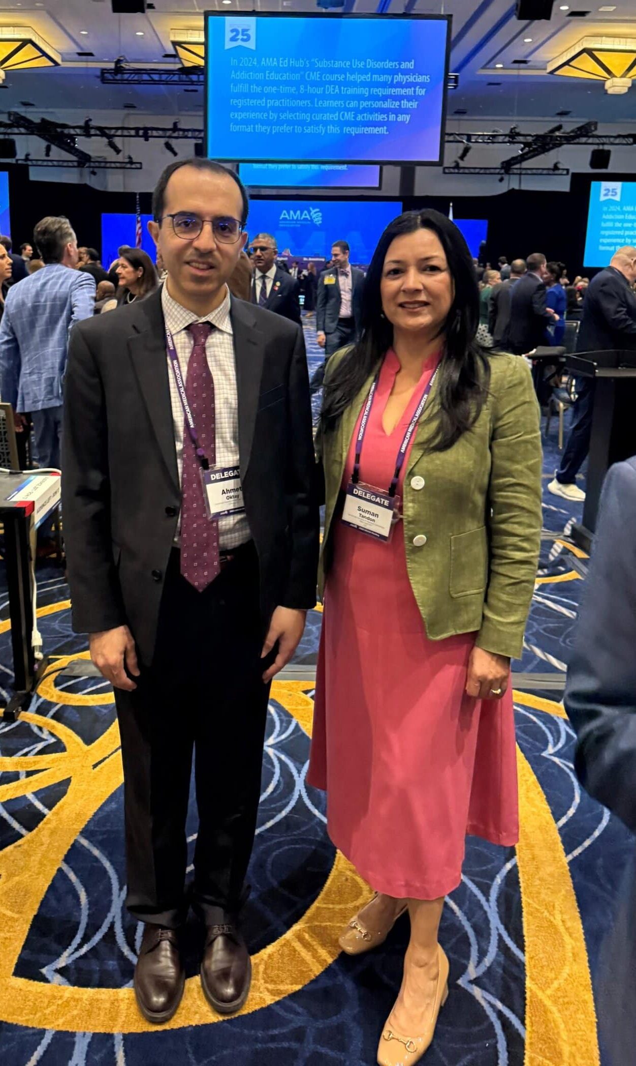 ASNC’s delegates to the American Medical Association House of Delegates: Ahmet Oktay, MD (left), and Suman Tandon, MD, FASNC (right).